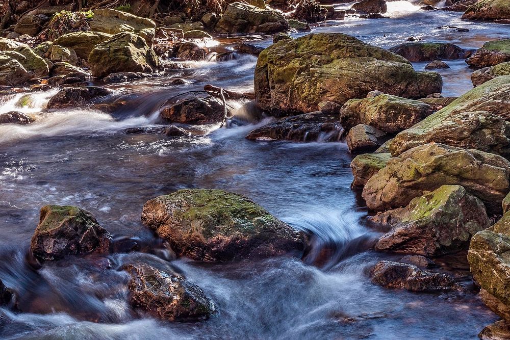 In the Ardennes, a number of mountain rivers including the Ninglinspo and this Hoëgne fed by rainwater flow through a landscape with boulders giving the whole a "prehistoric" character. The most attractive period is autumn because the leaves enhance the colors and more sunlight reaches the ground. The use of a Neutral Density filter for the purpose of a slow shutter speed makes the water look creamy.