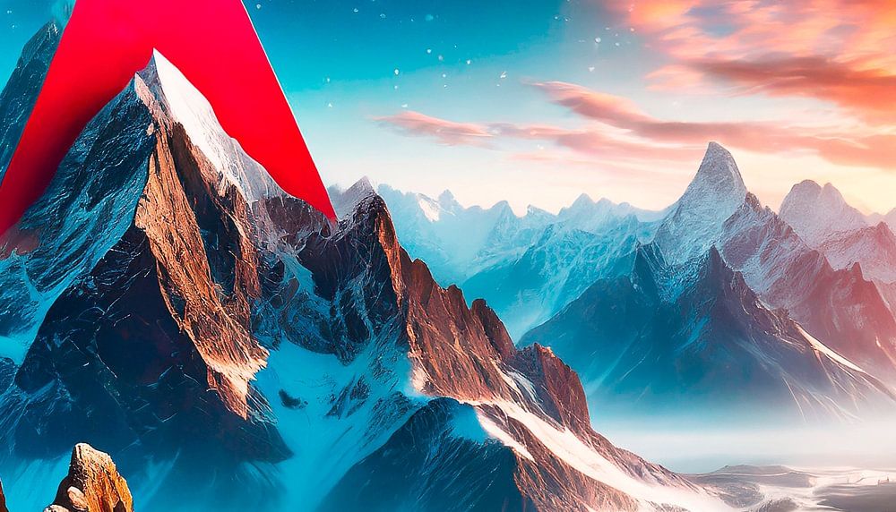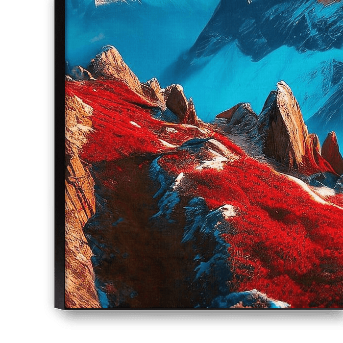 Mountains with snow and clouds like red art colour