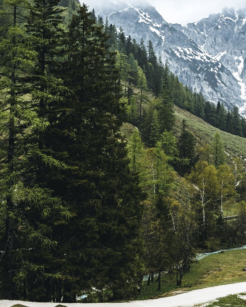 Alpine Road at Berchtesgaden with clouds on the sky and dust