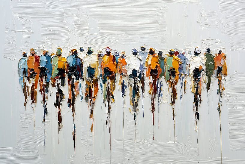 Buy this abstract artwork Moving forward together | Platoon of cyclists by Lauren Wilde on canvas, ArtFrame, poster and wallpaper, printed on demand in high quality.