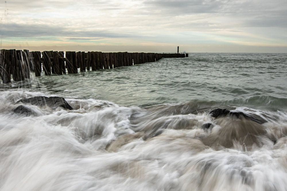Movement in the waves by breaking on the rocks and the longer shutter speed