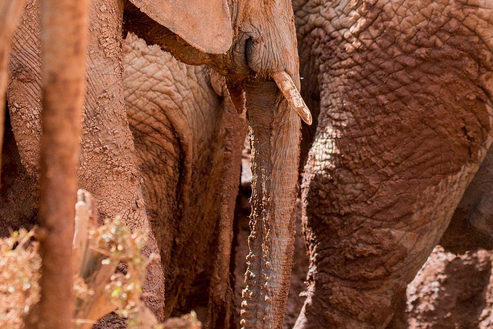 A couple of elephants keeping theirselves cool in the mud in the Addo Elephant Park in South Africa