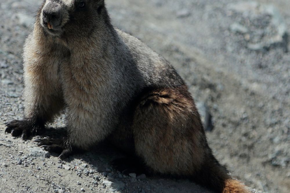 Deze murmeltier kwam tevoorschijn op de Peak-2-Peak mountain in Whistler, Canada