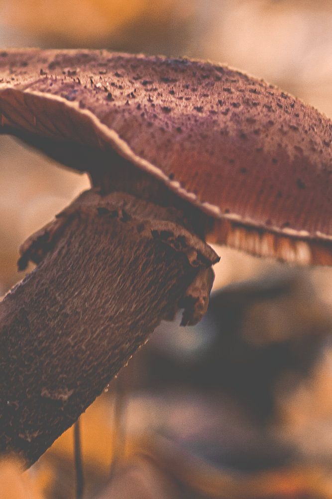 Looking for a beautiful autumn photo for your interior? This photo of a mushroom and soft orange leaves fits perfectly with autumn decoration.