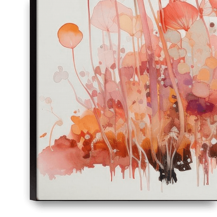 This colourful, trendy artwork is a vibrant and expressive watercolour painting that brings to life a colourful mushroom world.