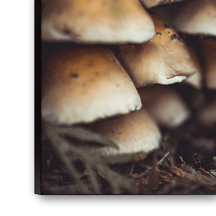 Buy the photo Mushrooms low to ground by Pim Haring on canvas, ArtFrame, poster and wallpaper, printed on demand in high quality.