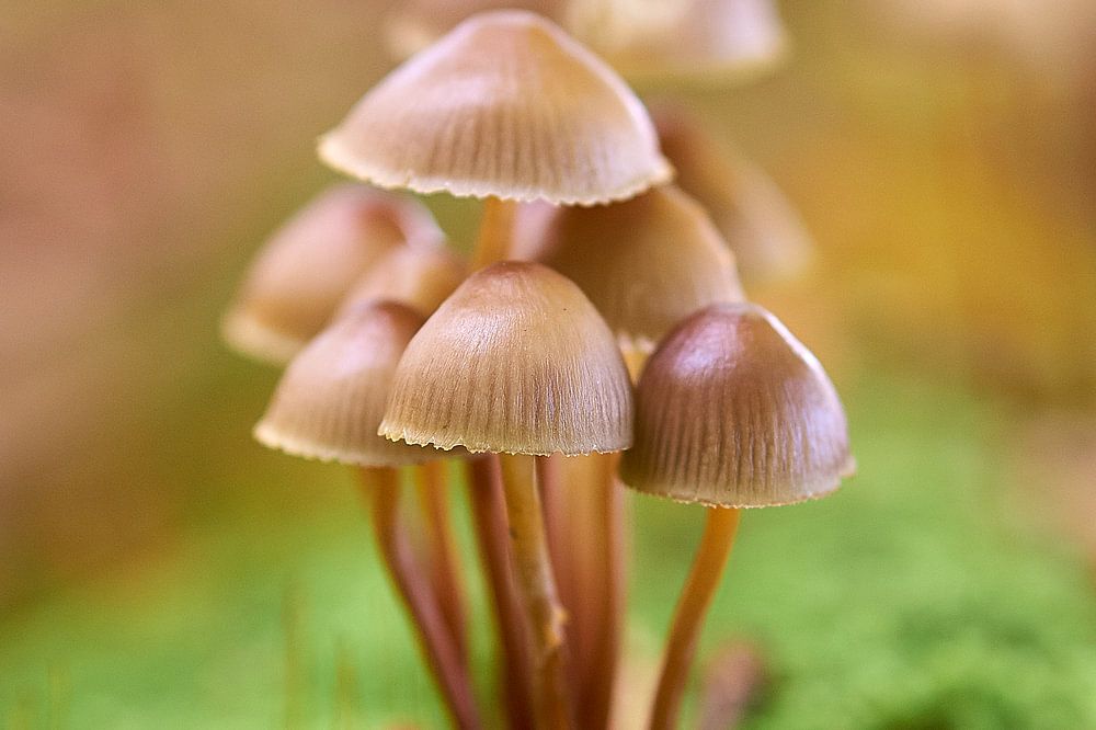 Paddenstoelen vanuit een laag standpunt met geringe scherptediepte