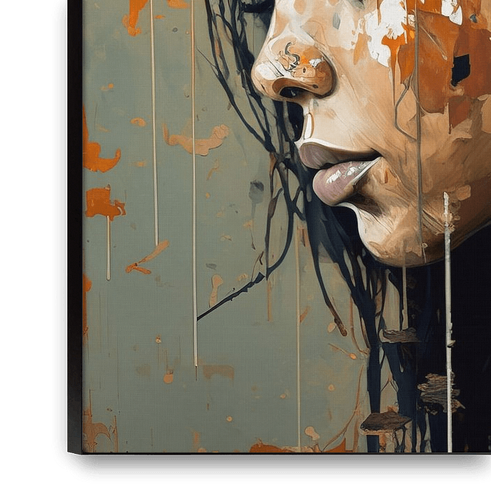 The painting "Music - My Future, My Past" shows a young woman completely immersed in her favourite music. The painting is painted with warm colours and has a lot of texture, making it look like the paint is dripping off the canvas. The young woman wears headphones and is completely cut off from the outside world. Her…