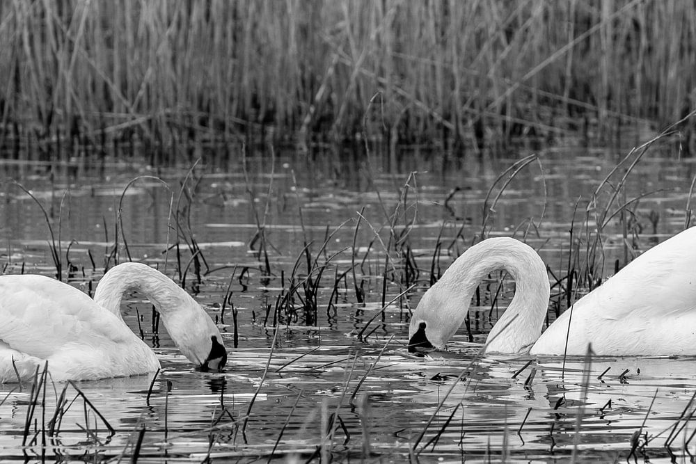 The Mute Swan is the most common swan in Germany. It breeds on all types of water and is relatively unaffected by disturbances. Many Central European populations originate from park and ornamental birds kept from the 16th century onwards. In the breeding area it is often aggressive towards humans or other swans if approached too closely. Its most striking feature is the large, black bump above the bill. The Mute Swan is the largest native water bird and grows to 125 to 160 cm in length. Females weigh between 6.6 and 12 kilograms. Males can weigh up to 15 kg. This makes the mute swan one of the heaviest birds capable of flight.