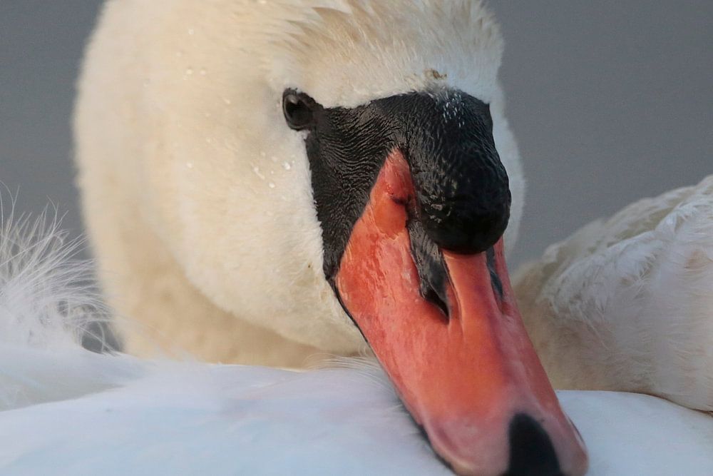 Now a series of photos of this mute swan. A true photo model. At one point, I even had to back up a few metres because he/she came too close. First at a distance, saw me crouching down and came swimming towards me. She/he put her neck , almost stretched on her rump. Sometimes the swan stopped , moved her neck in every conceivable curve and swam on again. Finally, she/he came out of the water, and walked towards me. Again she stopped a few times a turned her head in all directions again. Sometimes she stayed put for a few seconds , giving me time for a photo. In the end, I got a nice series together of this amazingly beautiful swan.