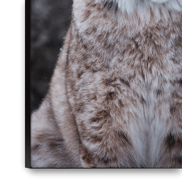 Buy the photo Muzzle of a wild forest cat lynx close-up- portrait, ears with tassels. independent look and strict by Michael Semenov on canvas, ArtFrame, poster and wallpaper, printed on demand in high quality.