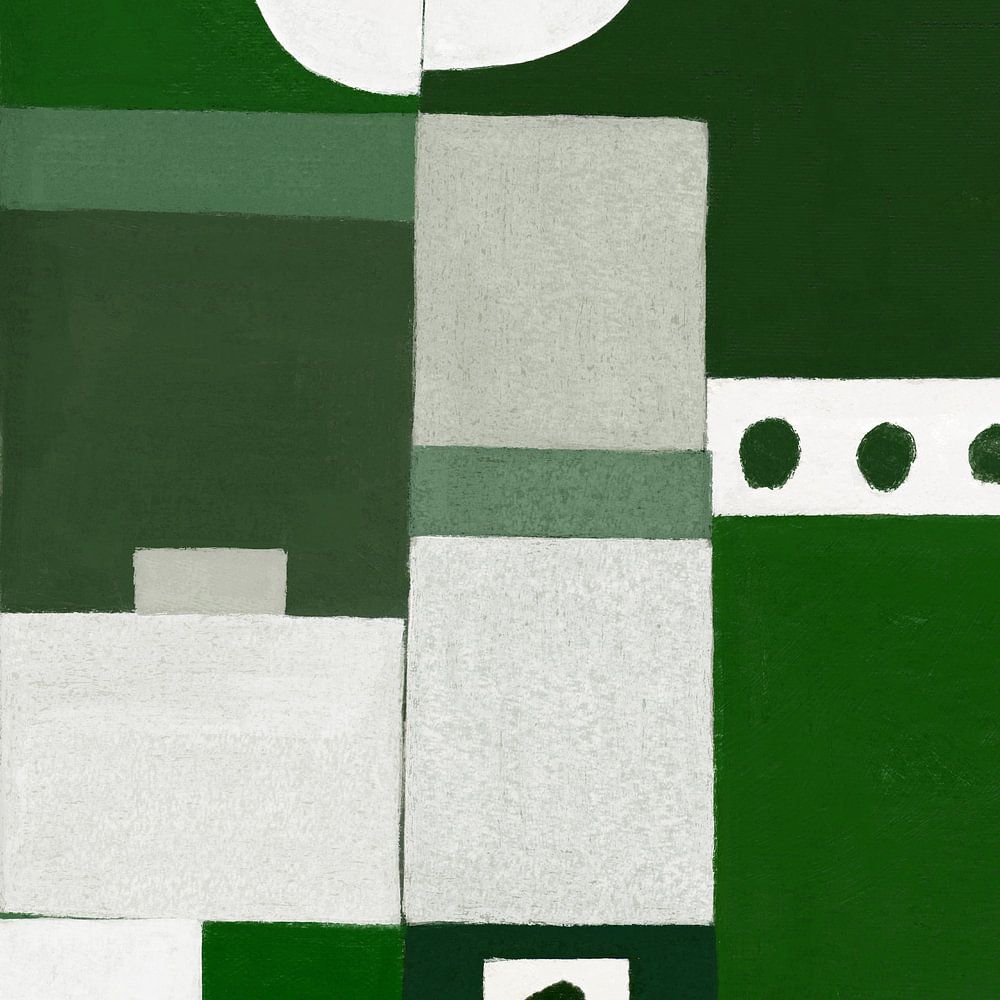 A contemporary abstract painting in shades of green, grey and white. Inspired by my Japanese garden.