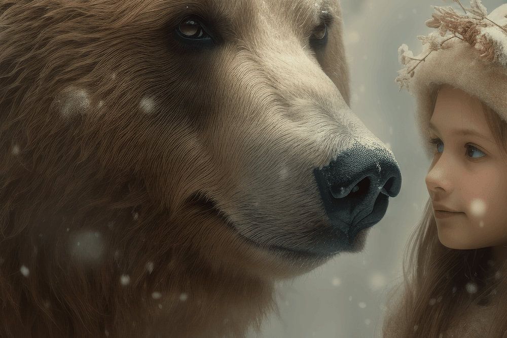 My biggest friend. This work is part of a series showing the imaginative friendship between a girl and a bear. To see the other works in the series, type "My biggest friend" in the search bar;