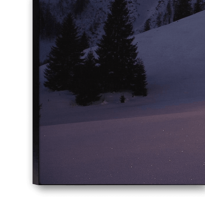 A large spruce stands in the middle of a snow-covered mountain landscape and is decorated with lights. In the background we see the silhouettes of the peaks of the Gosaukamm. The photo was taken during the so-called Weihnachtsidylle in the mountain village of Filzmoos.