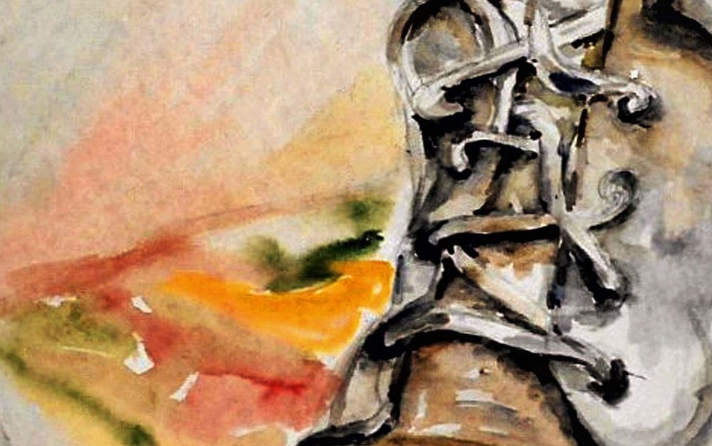 Shoes / Hiking / Watercolor / Painting / Old shoes / Hiking shoes / Laces / Colors / Painting / Still life /Figurative art / Fashion / Fashion