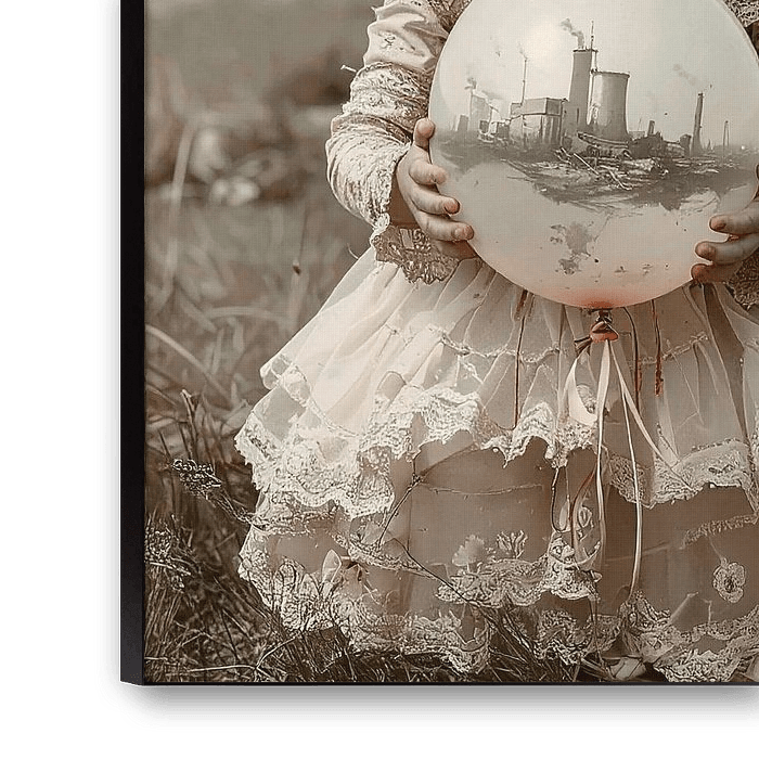 A beautiful little girl, wearing a gas mask, stands in a devastated nature. No more healthy air to breathe, no more nature. She is holding a balloon with the image of a nuclear power plant, the only thing she can still see. A nightmare for humanity, now let's hope it never gets that far. The image was generated using ai.