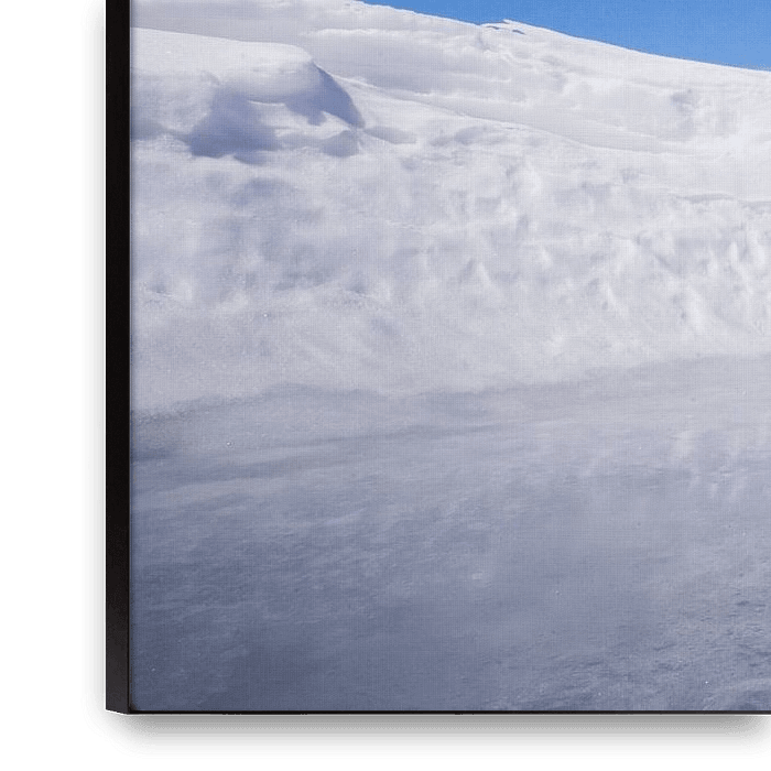 About ‘Mysterious ice cave, or ice wave hangs like icicles over the ice of Lake Baikal, blue sky’ by Michael Semenov