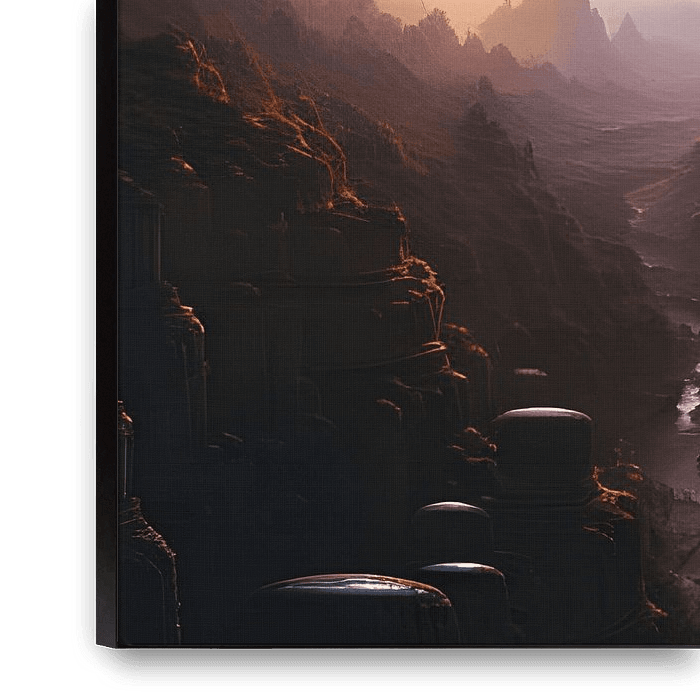 Welcome to this fantastic rocky valley, where the full moon illuminates the night that has just started. The remainders of the distant sunset point to a mysterious building situated near the river. Dare to discover more?
