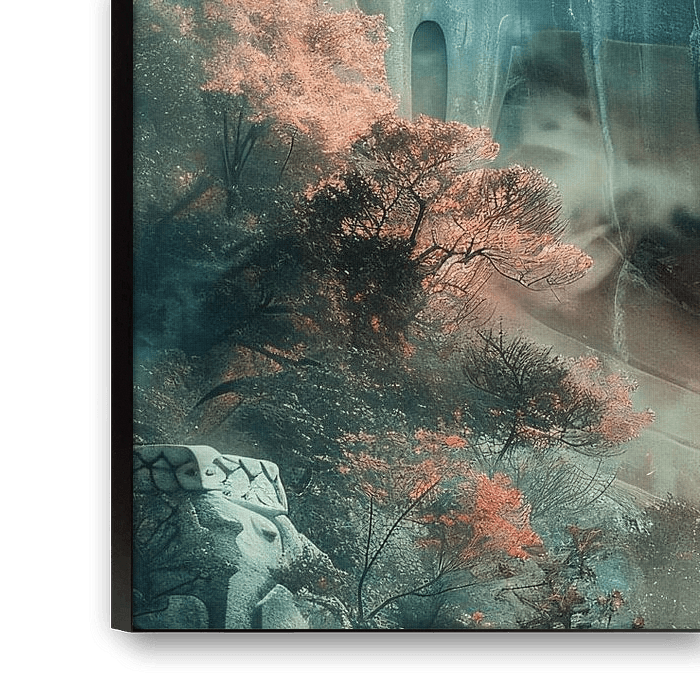 Stand face to face with the serene splendour of the mystical East. This breathtaking design shows an imposing Buddha statue, quietly overlooking a misty mountain landscape, where nature colours itself in the warm hues of autumn. Floating leaves dance around the stillness of stone, while in the distance the smallness of another Buddha statue reminds us of the eternity of nature and the transience of the moment. Perfect for a contemporary interior that yearns for a touch of Eastern mysticism and a reminder of the silence within ourselves.
