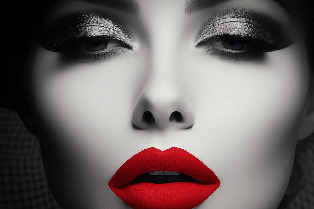 Mystical lady with red lips, black and white photograph by Animaflora PicsStock