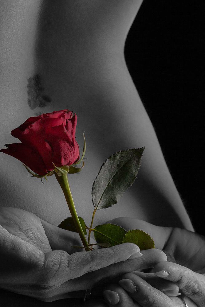 Buy this flower art Naked woman with a rose by Leo van Valkenburg on canvas, ArtFrame, poster and wallpaper, printed on demand in high quality.