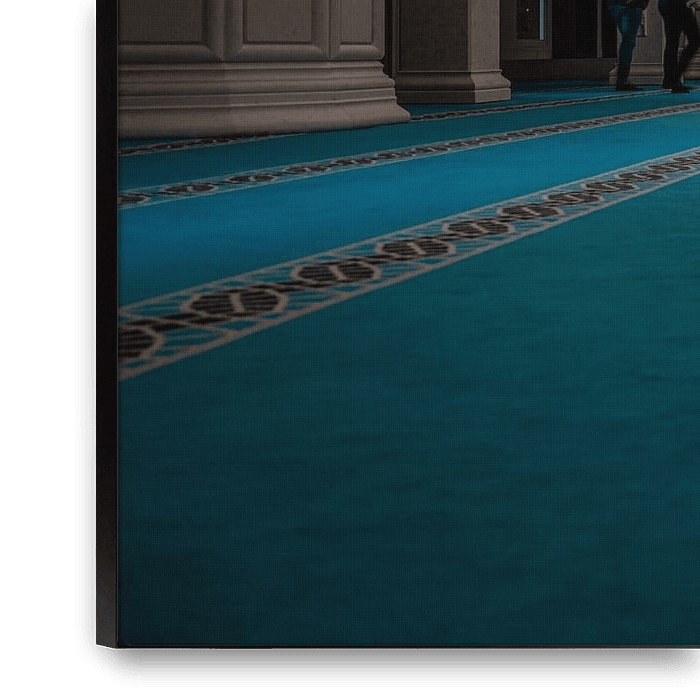 The use of usually blue or green carpets is striking. I made grateful use of the known motifs to create depth in the…