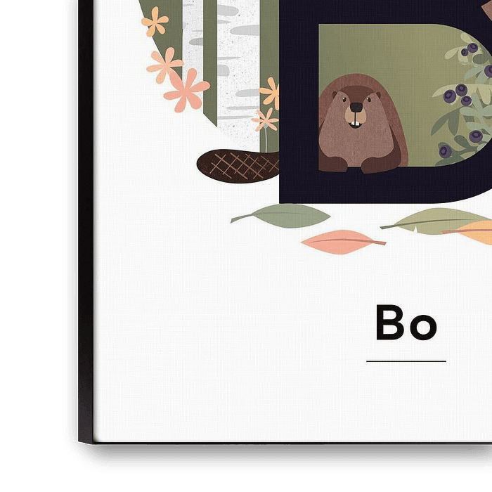 Anything with Bo's B. Find as many words as possible with the B. Bear, beaver, bus, trees, mountains, flowers, leaves, berries, birches, clouds... And how about upstairs, downstairs, happy or outside? Imagine it and make up your own story.