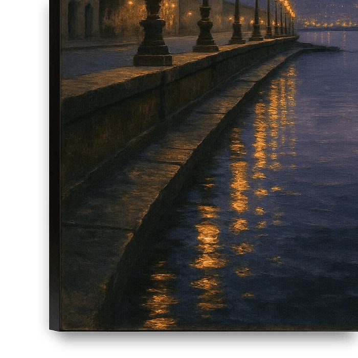 Buy this landscape artwork Naples Waterfront Serenity – Reflections of Dusk and Memory by Travel Shop on canvas, ArtFrame, poster and wallpaper, printed on demand in high quality.