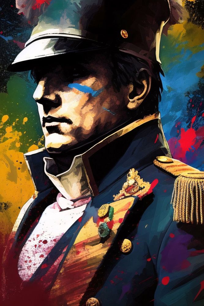 About "Napoleon Bonaparte Dramatic Pose in Vivid Colours"