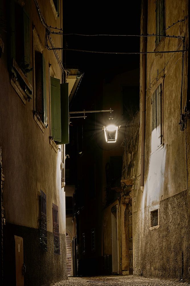 Romantic historic old town of Malcesine on Lake Garda in Italy with narrow streets at late hours without inhabitants and tourists. It was my first time in this place and I was immediately captivated by the history this place exudes. As the narrow streets are crowded with tourists during the day, it is a better choice to choose the night to capture the atmosphere. The paths are well lit and lead you through the historic centre of the town, following in the footsteps of earlier tourists like Goethe several centuries before me.