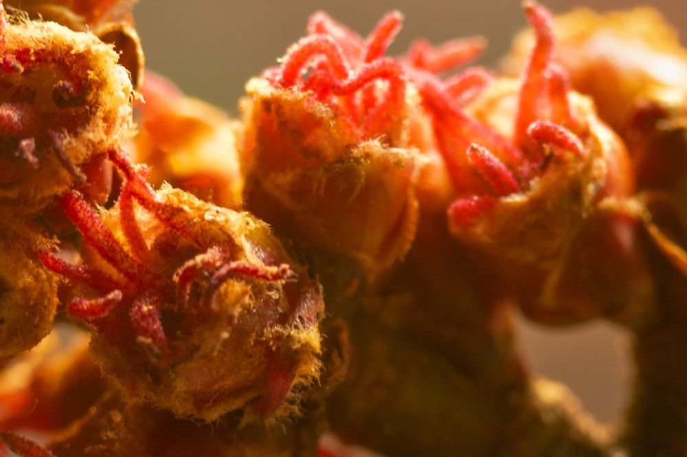 I looked at this nice twig and saw the strange shapes at the tips of it and took the twig with me.