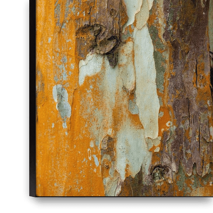 Detail shot of the bark of a rainbow eucalyptus. The scientific name of this tree is Eucalyptus deglupta. The bark shows a distinctive pattern of flaking layers in various colours. The different colours occur because the bark peels off in layers and exposed portions discolour over time.