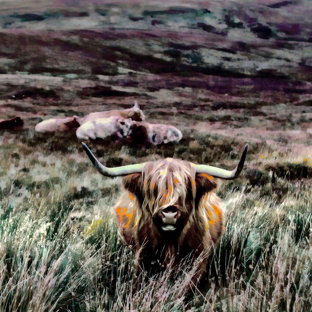 Buy this digital art artwork Natural landscape with highland cow by Mad Dog Art as a reproduction on canvas, ArtFrame, poster and wallpaper, printed on demand in high quality.