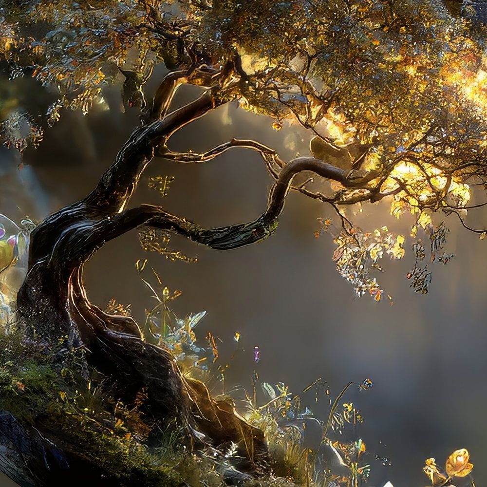 As if nature had paused for a moment… captured in a moment of pure harmony. In this extraordinary work of art, glass and landscape merge seamlessly. A powerful, gracefully shaped tree seems to grow from a world that is both tangible and intangible.