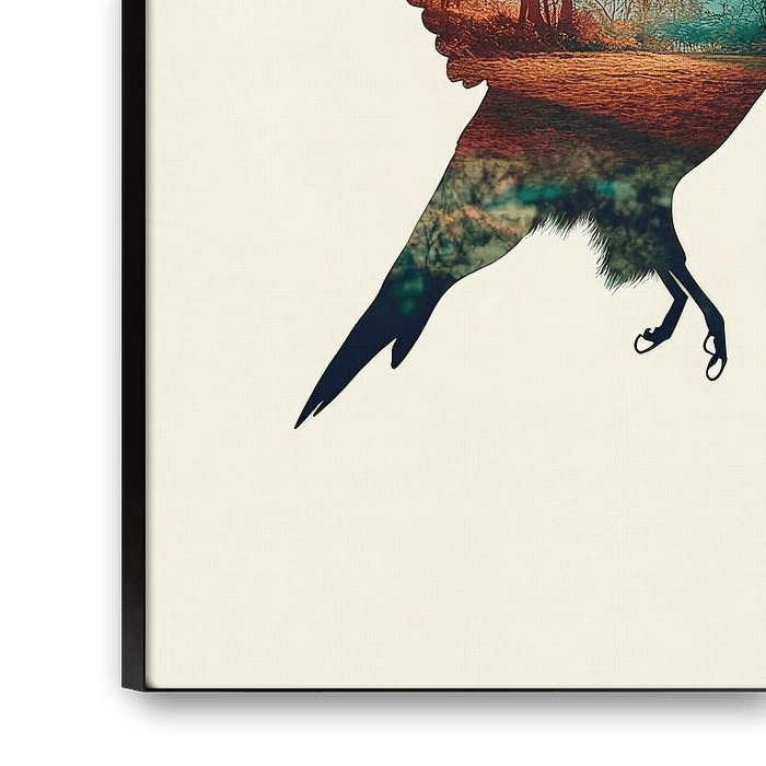 A Hummingbird unfolds in soft, pastel-coloured tones, carrying a dreamlike forest landscape inside. The harmonious combination of nature and animal epitomises freedom and lightness. This work of art is perfect for the bedroom, where it promotes calm and inspiration while stimulating the senses.