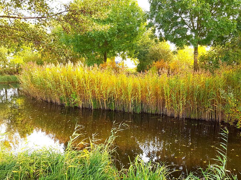 Mooie natuurfoto geschoten op een nazomerdag in het park (Uitgeest, Noord-Holland). Op de foto is een prachtig beekje te zien omringd met begroeiing.