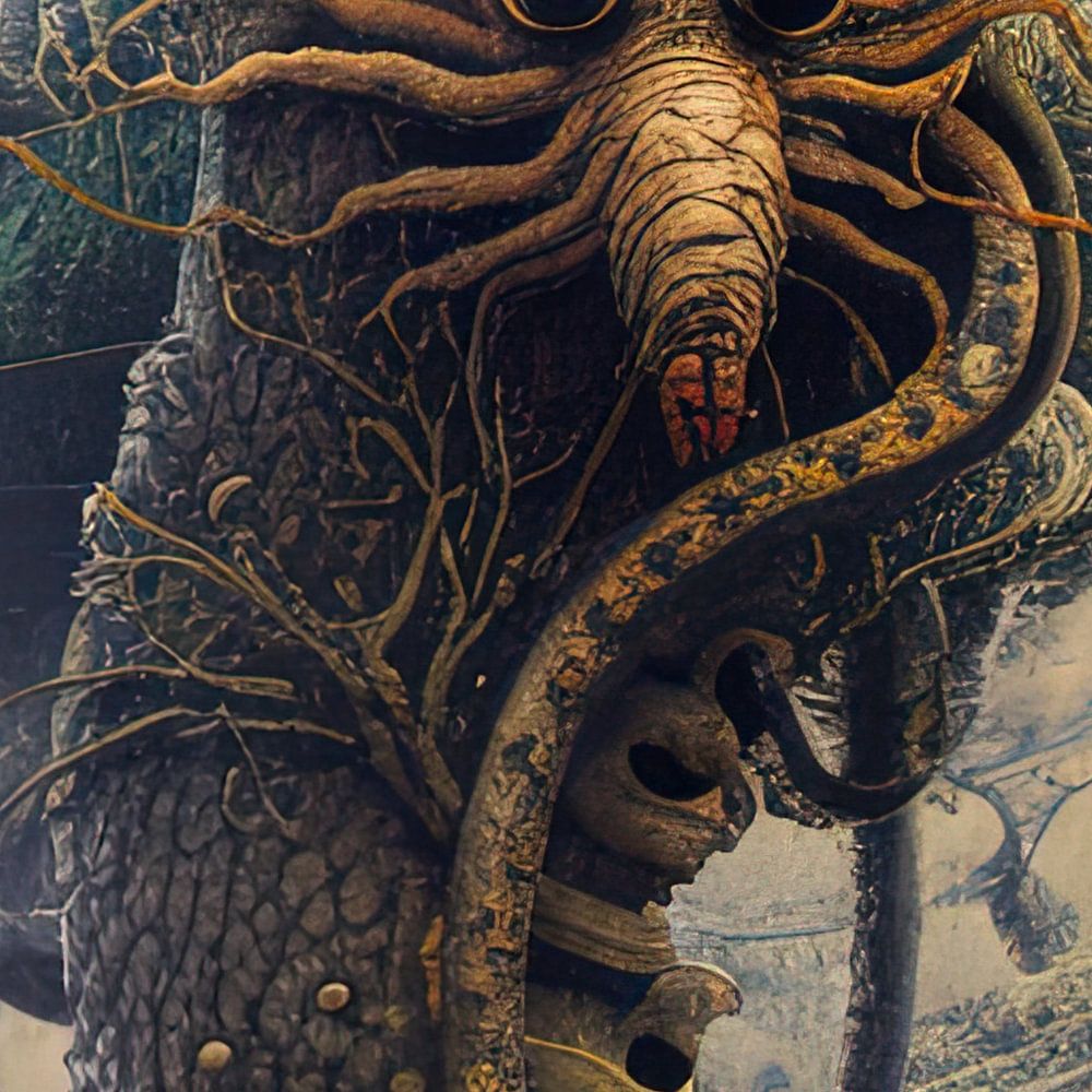 "Necromorph" is a fascinating digital artwork that transports the viewer into a surreal world full of eerie strangeness. The image shows a giant creature living in a misty forest of mushroom fractals. The anthropomorphic shape of the creature creates a strange tension between the familiar and the unfamiliar, while the forest of mushroom fractals exudes a strange atmosphere of mysticism and mystery. The artwork is a masterpiece of abstract art that breaks the boundaries of conventional reality and offers the viewer a completely new experience. It reminds us that there are an infinite number of life forms in the universe that we do not yet know about. "Necromorph" invites us to use our imagination and immerse ourselves in this fascinating world full of wonder and mystery. All in all, "Necromorph" is an incredibly captivating work of art that takes the viewer into a world full of magic, mystery and fascination. It is a masterpiece that is not only a visual experience, but also a philosophical exploration of the strange in the known and the uncanny in the unimaginable.