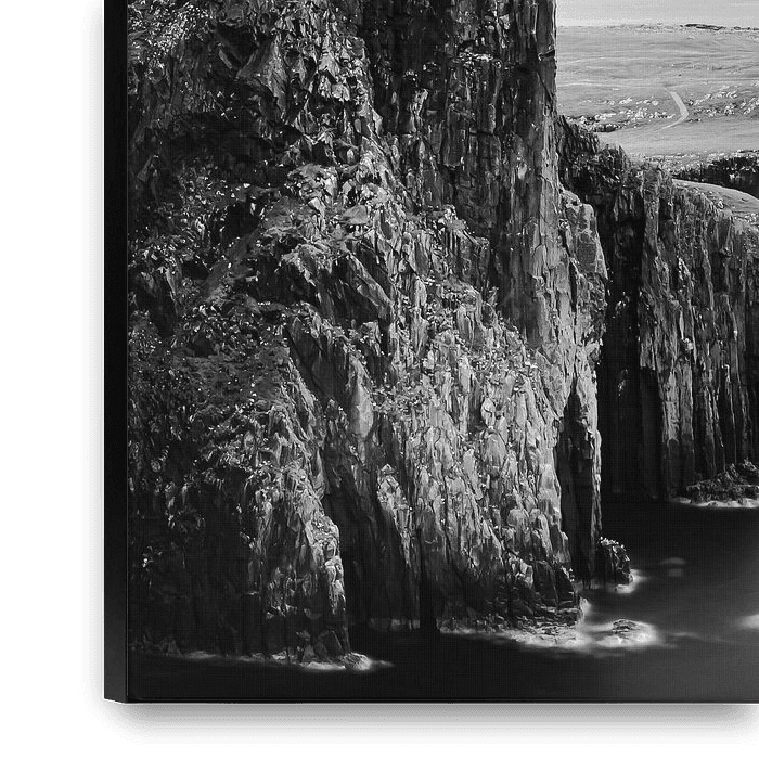 Buy this landscape artwork Neist Point Lighthouse in Black and White by Henk Meijer Photography on canvas, ArtFrame, poster and wallpaper, printed on demand in high quality.