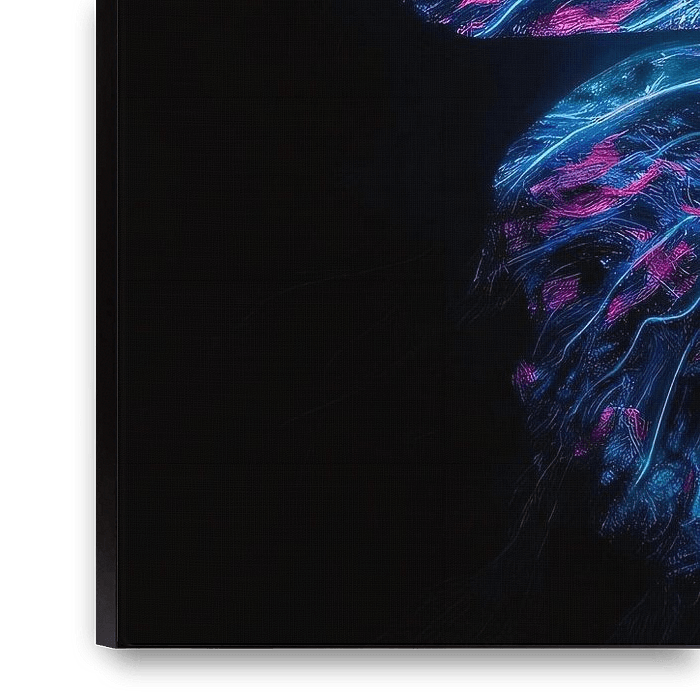 This enchanting artwork depicts a beautiful butterfly in an explosion of neon colours. The dynamic lines and vibrant hues of blue, purple, and pink come to life brilliantly against the dark background. This abstract and expressive design brings a sense of energy and movement to any space. Perfect for a modern interior, this striking…