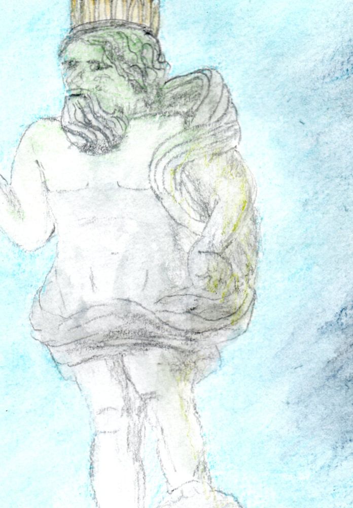 This watercolor shows the Neptune of the Neptunbrunnen at the Nordermarkt in Flensburg