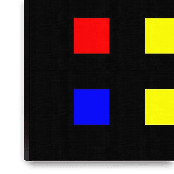Centrically arranged square strips, matrix 06x04, number of nests N=1, random #05, centers red, green, blue, yellow