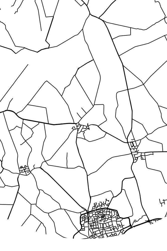 Black and white map, street map or street plan of Netersel. Netersel is located in the municipality of Bladel, province of North Brabant. The city map includes all public roads in Netersel. Furthermore, the map features the coordinates of the center of Netersel.
