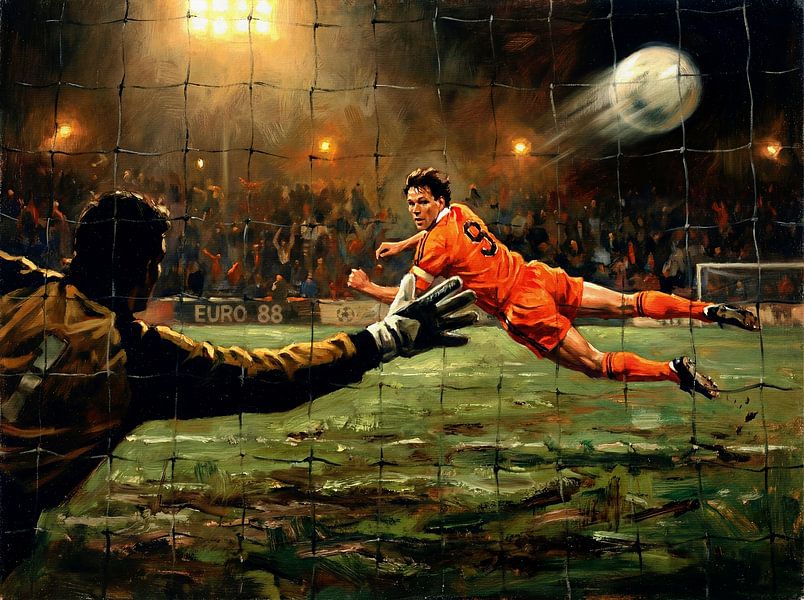 Buy this painting Netherlands vs Germany Soccer action by Jan Keteleer as a reproduction on canvas, ArtFrame, poster and wallpaper, printed on demand in high quality.