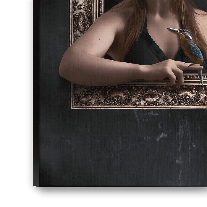 A striking element in this artwork is the kingfisher, chosen as a symbol of abundance. This choice stands out from clichés such as a crow or a white dove, and adds a unique touch to the whole. Previous works in this series mainly highlighted the struggles, but this artwork marks a turning point by also highlighting the positive aspects.