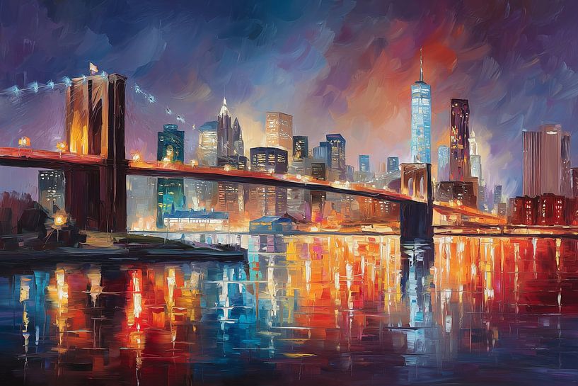Buy this painting New York – Brooklyn Bridge by ARTemberaubend as a reproduction on canvas, ArtFrame, poster and wallpaper, printed on demand in high quality.