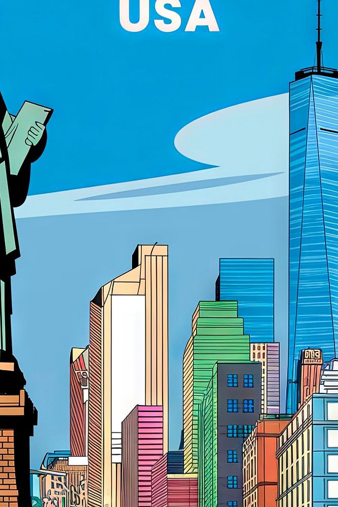 A vibrant skyline pulsates in the background, while the majestic Statue of Liberty stands proudly in the foreground. With the characteristic yellow of New York's taxis and towering skyscrapers, the image radiates the vibrant life and ceaseless spirit of this exciting metropolis. New York City, the heart of a nation!