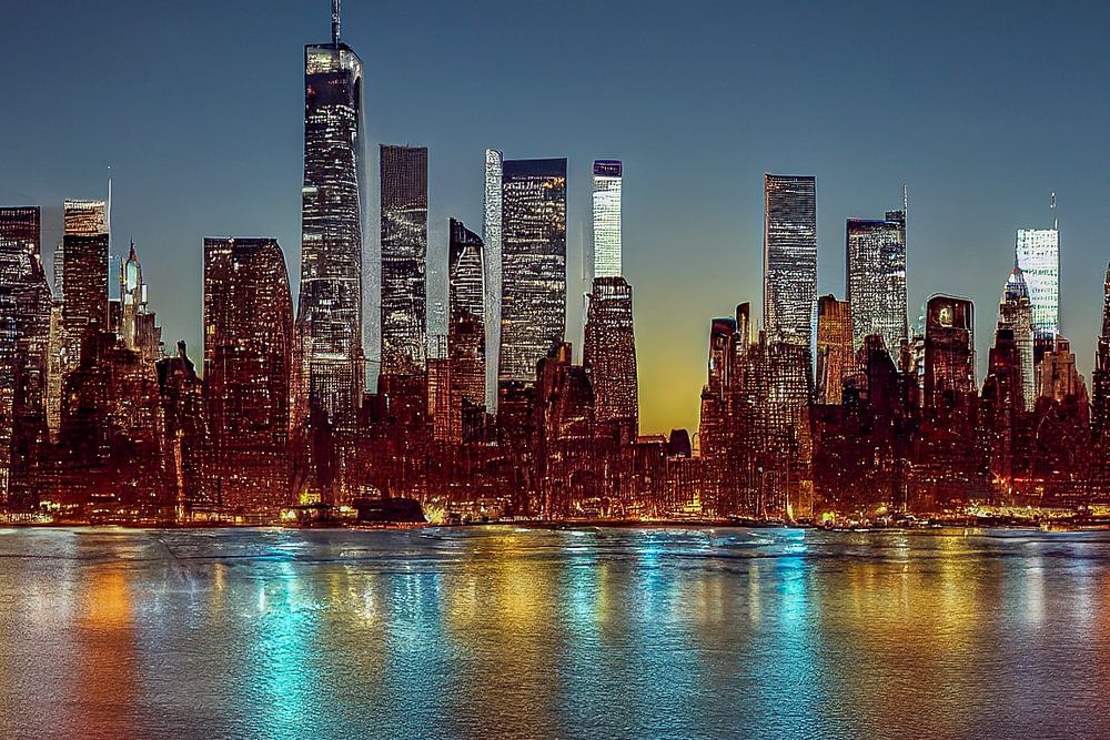 Buy this illustration New York City skyline at night by Christian Keiler on canvas, ArtFrame, poster and wallpaper, printed on demand in high quality.