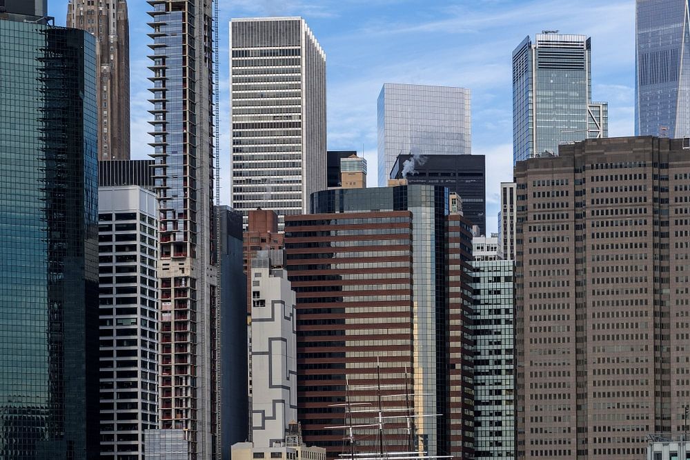 The skyline of the beautiful and captivating city of New York. Seen from Brooklyn. A beautiful and colourful picture of the skyline of the Big Apple.