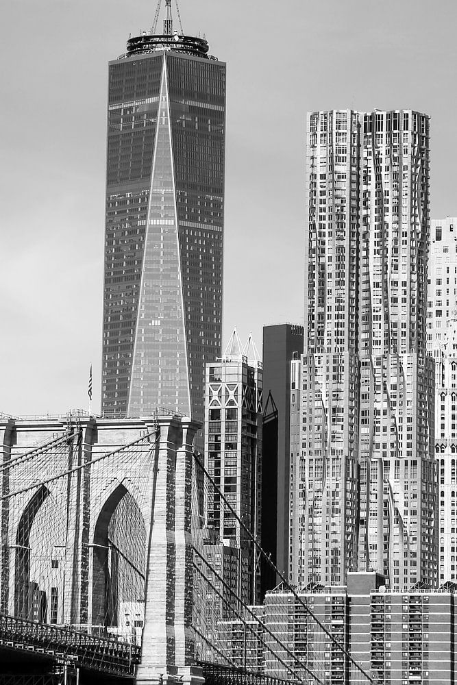 The Brooklyn Bridge and downtown Manhattan as seen from Brooklyn Bridge park.