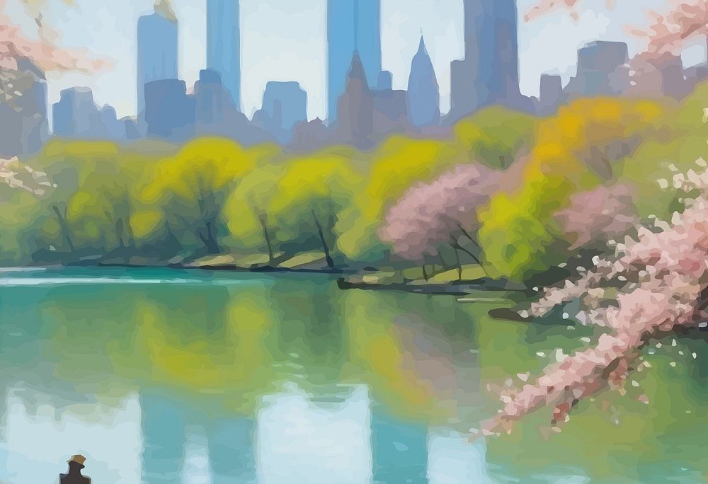 Central Park glows in golden autumn tones in this impressionist cityscape, where the calm river mirrors a skyline softened by haze. Broad, textured strokes blend the rust, gold, and crimson of turning leaves with the steady blues of water and sky. The city hums in the distance, yet here the moment feels still, offering an urban escape within nature’s embrace. A piece that bridges the energy of New York with the peace of the seasons.